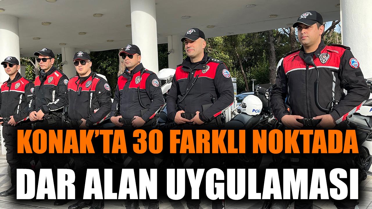İzmir İl Emniyet Müdürlüğü talimatıyla Konak ilçesinde rutin uygulamalara ek olarak kapsamlı dar alan uygulamaları gerçekleştirildi. İlçede 30 farklı noktada eş zamanlı yapılan gündüz saatlerindeki uygulamalarda öğrencilerin güvenliği için okul önlerindeki kafeler ve işletmelerde kontrol yapıldı. Akşam ve gece yapılan uygulamalarda ise aranan şahısların yakalanması, suça meyilli kişilerin tespiti ve motosikletle işlenen suçların önlenmesine yönelik çalışmalar artırıldı. Bu kapsamda suçun önüne geçilmesi amacıyla geniş personel desteğiyle sokak ve kritik noktalarda kontroller sürdürüldü.