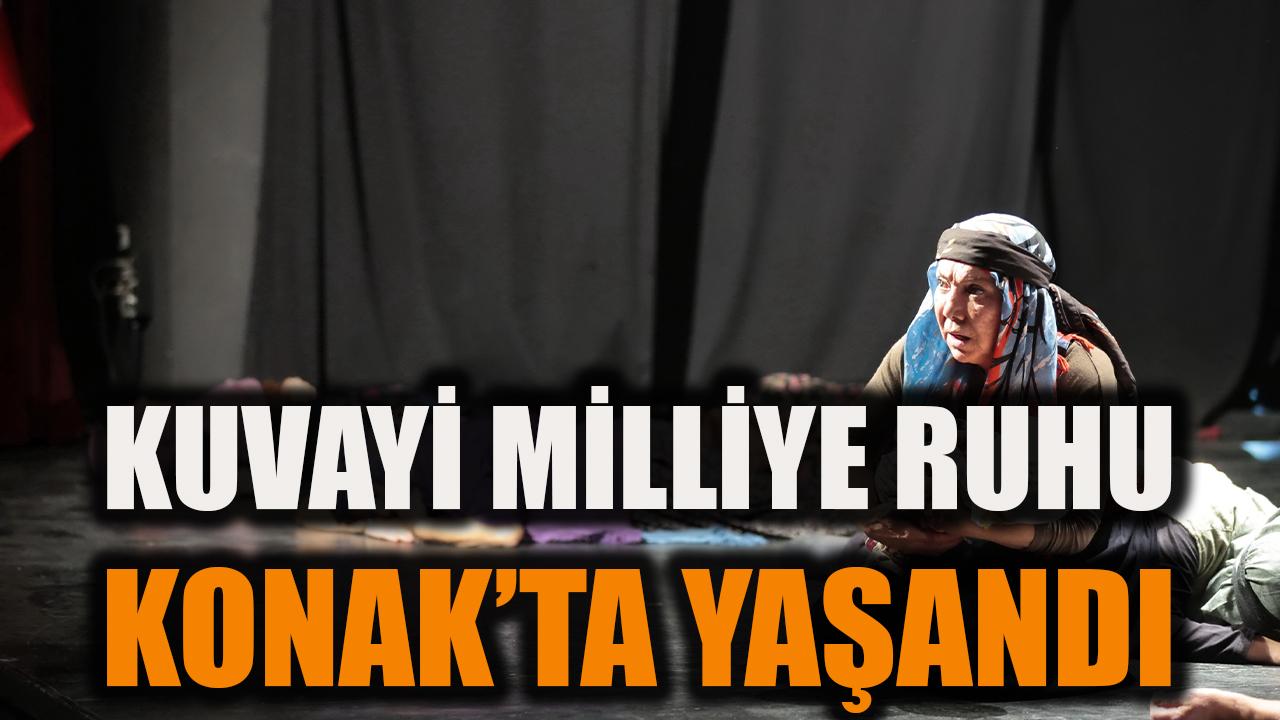 Konak Belediyesi’nin 29 Ekim haftası boyunca her gün yeni bir etkinlikle taçlanan Cumhuriyet Bayramı kutlamaları, bu kez İzmirlilere tiyatro keyfi yaşattı. Dr. Selahattin Akçiçek Kültür Merkezi Avni Anıl Sahnesi’nin ev sahipliği yaptığı “Kuvayi Milliye Destanı” ayakta alkışlandı. Sarı Zeybek Kültür ve Sanat Derneği Tiyatro Topluluğu tarafından sahneye taşınan, Nazım Hikmet’in kaleminden ulusal kurtuluş mücadelesinin destansı hikayesini anlatan oyun duygusal anlar yaşattı. Kalabalık kadrosuyla dikkat çeken oyunu Ayla Taşdelen yönetti. Türkiye Cumhuriyeti’nin kuruluşluna giden yolda yaşanan zorluklara rağmen Kuvayi Milliye ruhuyla memleketin yeniden doğuşunu anlatan oyun izleyenleri gururlandırdı. Seyirciden tam not alan “Kuvayi Milliye Destanı” dakikalarca alkışlandı.