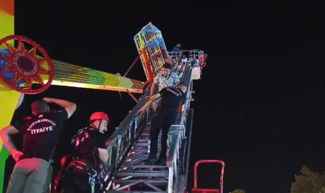 Olay, Kahramanmaraş Fuar Merkezi’ndeki lunaparkta meydana geldi. Alandaki oyun gruplarında eğlenmeye çalışan bir grup vatandaş ‘çekiç’ isimli oyuncağa bindi. Bir müddet ters taklalar atarak içerisindeki yaklaşık 50 kişiyi eğlendiren cihaz bir anda bozulunca vatandaşlar havada asılı kaldı. Eğlence mekanında korku dolu anlar yaşayan ve baş aşağı asılı şekilde beklemek zorunda kalan vatandaşlar büyük panik yaşadı.