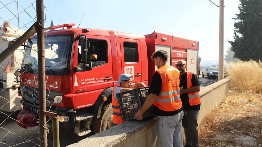 Menderes Belediyesi, yangın afetinin ilk gününden bu yana sahada etkin bir şekilde çalışmaya devam ediyor. Yangın söndürme, zarar gören hayvanlara veteriner desteği, vatandaş tahliyesi gibi birçok noktada desteğini sürdüren Menderes Belediyesi ekipleri vatandaş ve görevlilere yiyecek içecek konusunda da destek veriyor. Ekipler gün içinde düzenli olarak bölgeyi gezerek ihtiyaçları soruyor ve kumanyaları dağıtıyor. Vatandaşların tahliye edilmesinde de etkin bir şekilde rol alan Menderes Belediyesi, vatandaşların güvende kalmaları için çalışıyor.