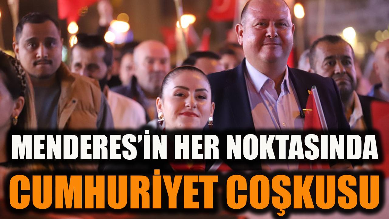 Menderes’te Cumhuriyet coşkusu birçok noktada birçok etkinlik ve törenle yaşandı. İlçenin her noktasında kırmızı beyaz bayraklar dalgalandı. 28 Ekim gün ortasından başlayan coşku 29 Ekim gecesine kadar sürdü. Çelenk sunma töreni, fener alayı, Cumhuriyet balosu, saha etkinlikleri ve Özdere Atatürk Kültür Merkezi açılışı ile vatandaşlar 102. Yılı doyasıya yaşadı.