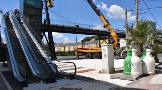 Asansörlü-yürüyen merdivenli yeni üst geçit ile yayaların karşıdan karşıya geçişlerinde konfor ve emniyet sağlanacak. Özellikle engelli vatandaşların kullanımına yönelik olarak yapılan asansörler, vatandaşlara rahat kullanım imkanı sağlarken, üst geçitlerdeki yürüyen merdivenler de yayaların güvenle ve rahatlıkla karşıdan karşıya geçişlerinde yardımcı olacak. 54 metre uzunluğunda inşa edilen yeni üst geçit, 12 metrelik iki büyük kolon ve bunlardan çıkan çelik halatlar ile asma köprüleri andıran bir mimariye sahip. Uzunlukları 7.45 metre ve 7.70 metre olmak üzere iki iniş ve iki çıkış yürüyen merdivenleri ile hizmet verecek olan geçitte 800 kg kapasiteli iki de asansör bulunuyor.