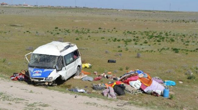 Şanlıurfa'dan Aksaray'a ailesiyle birlikte mevsimlik işçi olarak çalışmak için gelen Nail Kara'nın (43) kullandığı minibüs, kontrolden çıkarak devrildi. Kazada, sürücü Kara, eşi ve 11 çocuğu yaralandı.