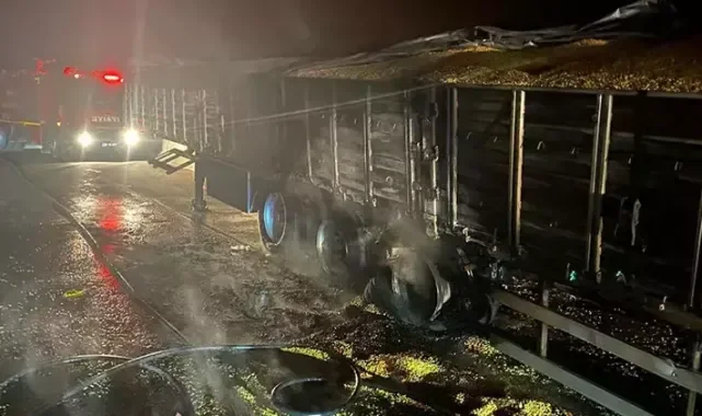 Mısır yüklü TIR’ın dorsesinde çıkan yangın söndürüldü