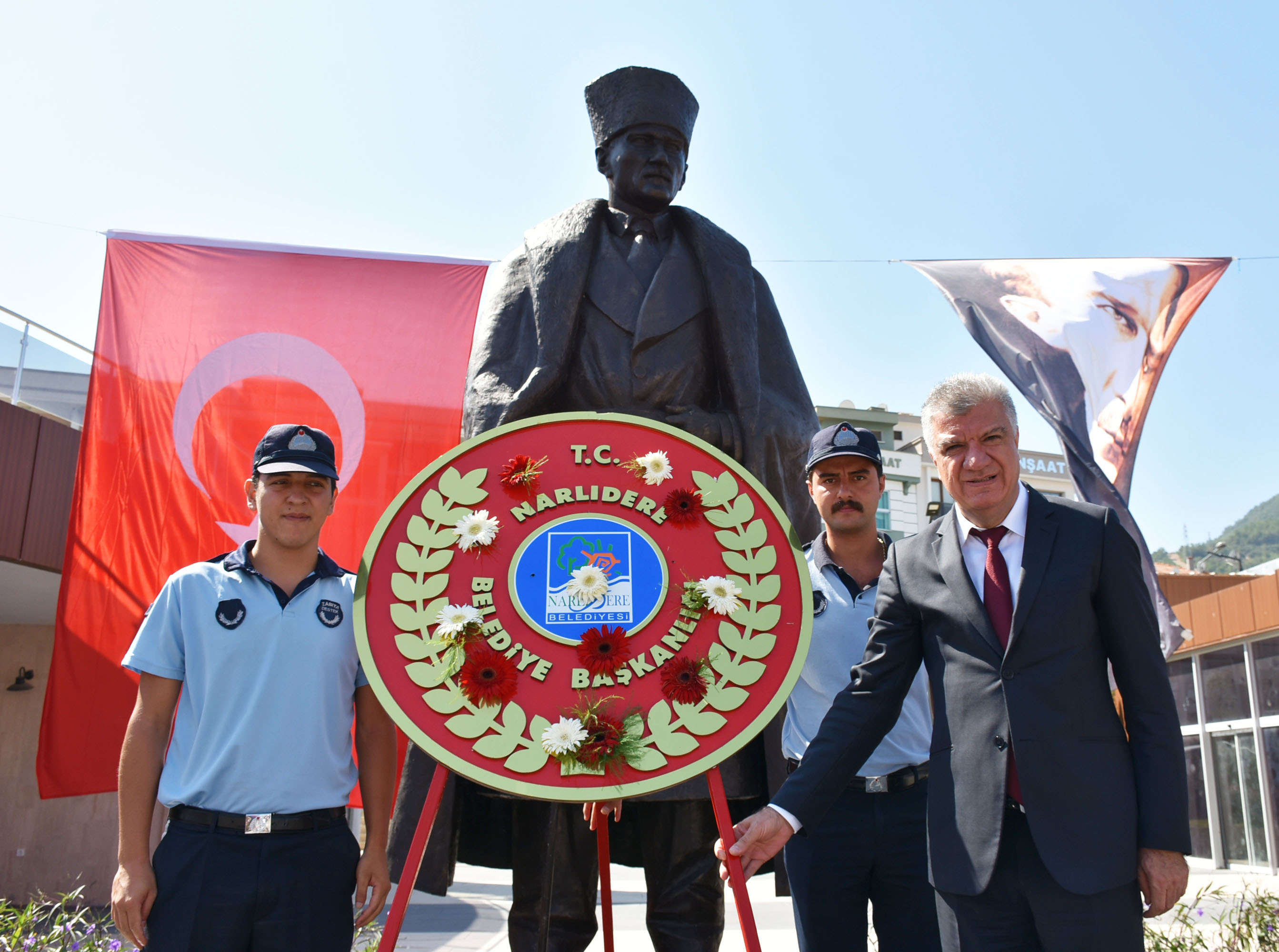 ATATÜRK HEYKELİNE ÇELENK BIRAKILDI