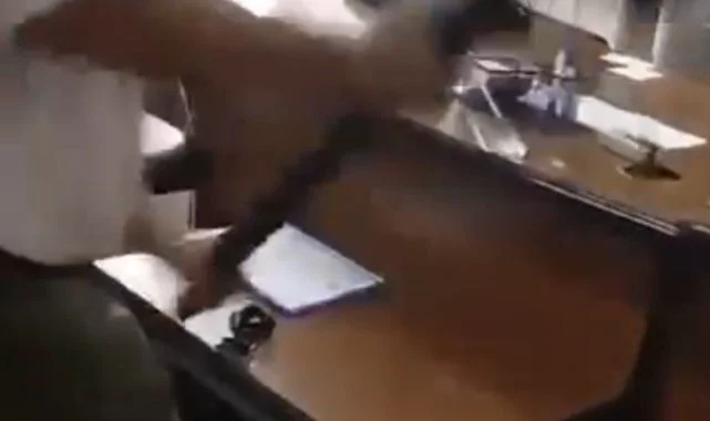 İzmir'in Çiğli ilçesinde öfkelenen sendika temsilcisi, müdür odasına balyozla dalarak masayı parçaladı, ortalığı savaş alanına çevirdi.