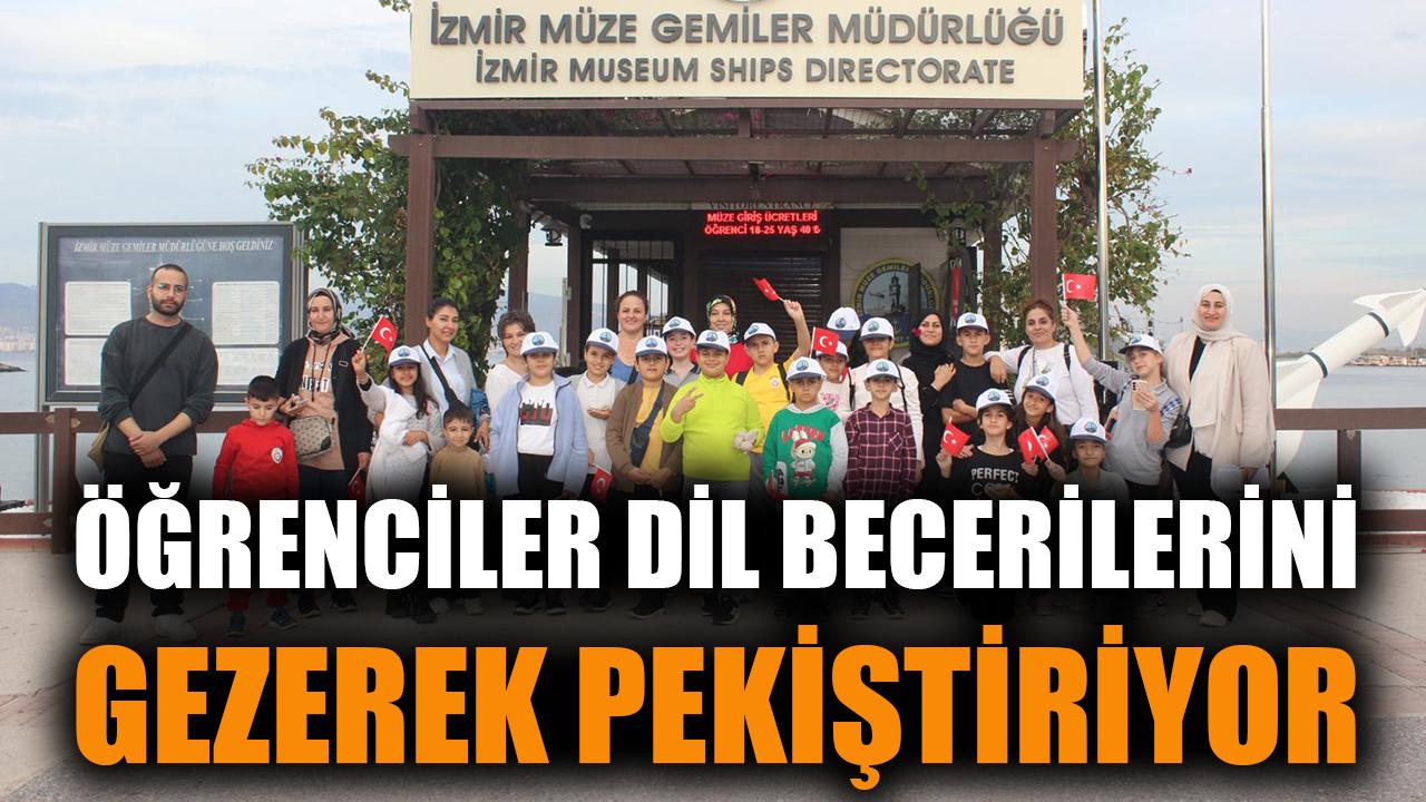 İzmir Büyükşehir Belediyesi, öğrencilerin dil becerilerini geliştirmek amacıyla yaptığı çalışmaları saha gezileriyle destekliyor. İzmir Müze Gemiler Müdürlüğü iş birliğiyle gerçekleştirilen Geri Dönüşüm Atölyesi ve Gemi Müzesi gezisinde, öğrenciler hem müzeyi tanıma ve atölye çalışmalarına katılma, hem de İngilizcelerini pekiştirme fırsatı buldu.