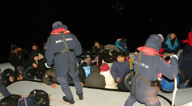 Ekiplerce durdurulan lastik bottaki 15 Suriye, 14 Afganistan, 5 Kongo, 2 Irak ve 2 Afrika uyruklu 38 düzensiz göçmen kurtarıldı.