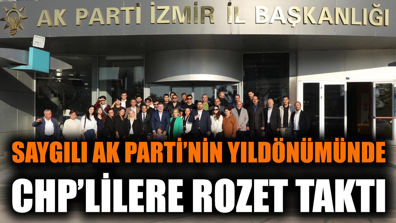 AK Parti İzmir İl Başkanı Bilal Saygılı, AK Parti'nin iktidara gelişinin yıldönümünde, aralarında CHP'den istifa edenlerin de olduğu, AK Parti'ye geçen Türkmen vatandaşlara rozeti taktı.