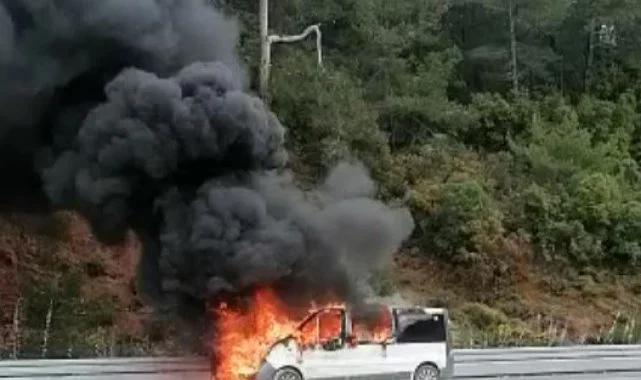 Edinilen bilgiye göre, Kumluca'dan Antalya istikametine gitmekte olan Mehmet Karlar (28) idaresindeki 35 ABP 423 plakalı hafif ticari araç, Belen Mahallesi Araç Muayene İstasyonu yakınlarına geldiğinde aniden alev aldı. Sürücü ve yanındaki iki yolcu kendilerini dışarı atarken, yoldan geçen diğer sürücüler durumu 112 Acil Çağrı Merkezi'ne bildirdi. İhbar üzerine olay yerine jandarma, itfaiye ve sağlık ekipleri sevk edildi. Belirtilen adrese gelen itfaiye ekipleri yanan aracı söndürdü. Araç kullanılamaz hale gelirken, jandarma yangınla ilgili inceleme başlattı.