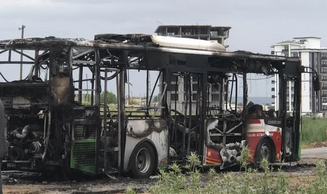 Seyir halindeki belediye otobüsü cayır cayır yandı