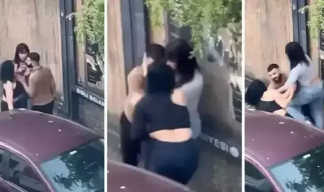 Tartışma sırasında erkek ve kadınlar arasında arbede yaşandı.Tartışmanın arbedeye dönüşmesi üzerine erkek, sarılarak kadınlarından birini kavgaya karışan diğer kadından kurtarmaya çalıştı. Dakikalarca kavga eden 3 kişi daha sonra sokaktan ayrıldı. O anlar cep telefonu kamerasına yansıdı.