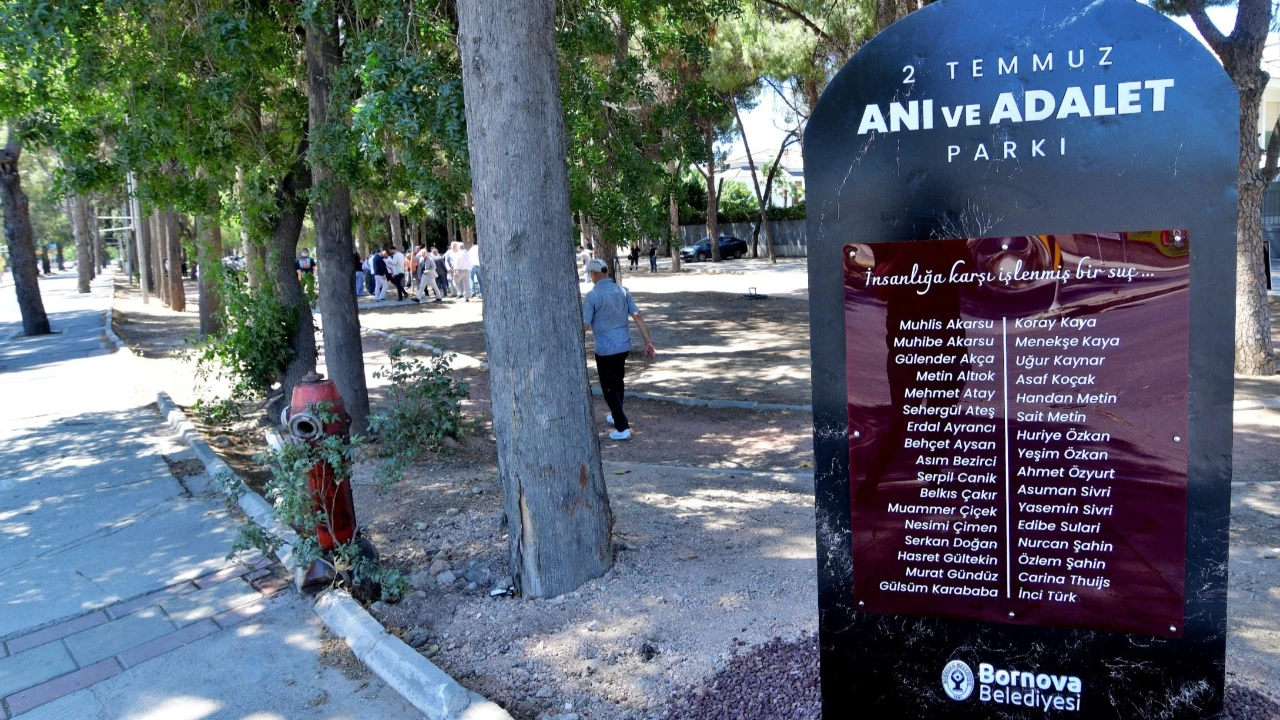 ivas Katliamı’nın 32. yılında Bornova Belediyesi tarafından hayata geçirilen “2 Temmuz Anı ve Adalet Parkı” anlamlı ve duygu yüklü bir törenle açıldı. Kazım Dirik Mahallesi’nde, Bornova Anadolu Lisesi karşısındaki 370 Sokak ve Ord. Prof. Dr. Muhittin Erel Caddesi’nin kesişiminde yer alan park, yalnızca bir yeşil alan değil, toplumsal hafızayı diri tutacak bir anıt alanı olarak tasarlandı.