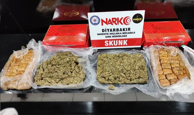 Diyarbakır İl Emniyet Müdürlüğü Narkotik Suçlarla Mücadele Şube Müdürlüğü ekiplerince yapılan uyuşturucu operasyonunda; üzeri baklava ile kapatılmış tatlı kutularının alt kısmında, içerisinde çok sayıda canlı güvercin bulunan kutunun alt kısmında, zeytin kovaları içerisinde, zeytinler arasında paketlenmiş halde, peynir kovalarının alt kısmına zulalanmış vaziyette bulunan uyuşturucu maddeleri ele geçirildi.
