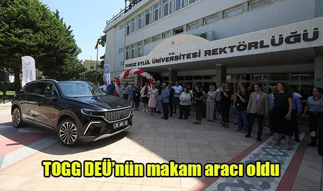 Dokuz Eylül Üniversitesi (DEÜ), Türkiye'nin gururu yerli ve milli otomobili TOGG’u düzenlenen törenle teslim aldı. TOGG’un, İzmir’deki üniversiteler arasında ilk kez DEÜ’de makam aracı olarak kullanılacağını açıklayan DEÜ Rektörü Prof. Dr. Nükhet Hotar, ilk sürüşü de kendisi yaptı. Rektör Hotar, “Lansmanı Muhterem Cumhurbaşkanımız Recep Tayyip Erdoğan tarafından yapılan ve ilk siparişini aynı gün verdiğimiz; Türkiye’nin güçlü yarınlarının temel taşlarından yerli ve milli aracımız TOGG’u teslim almanın mutluluğunu yaşıyoruz” dedi.