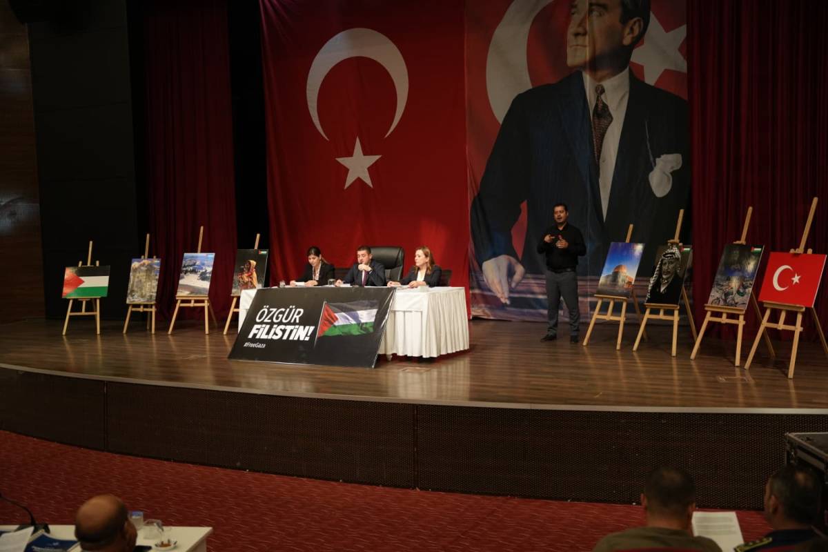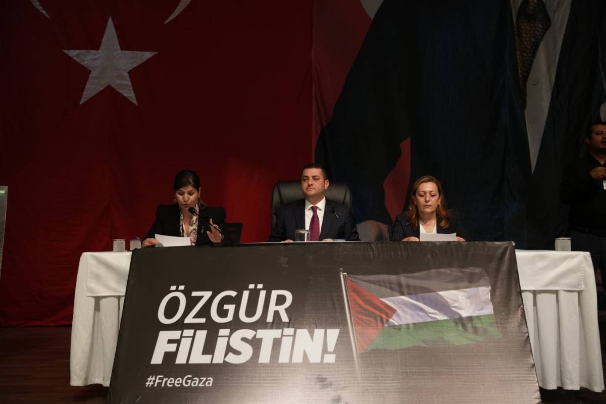Torbalı Belediyesi Ekim Ayı Olağan Meclis Toplantısının ilk oturumu, Belediye Başkanı Övünç Demir başkanlığında Torbalı Belediyesi Kültür Merkezi Konferans Salonu’nda gerçekleştirildi. Toplantı, Başkan Demir’in Filistin’de yaşanan saldırıları kınamasıyla başladı. Torbalı Belediye Başkanı Övünç Demir, Filistin’e destek olmak amacıyla yaptığı konuşmada “Filistin’de yaşanan insanlık dramı nedeniyle İsrail’i lanetliyorum. Televizyonlarda etkilendiğimiz hayat hikayelerine tanık olduğumuz birçok olaya şahit olduk ama biliyorsunuz Jadoua diye 10 yaşlarında bir kardeşimiz, kardeşini İsrail’in zulmünden kurtarmak için kilometrelerce yol yürüdü. Şunu söylemeden geçemeyeceğim. Bebek katleden kim olursa olsun lanetliyorum. Bebek öldürenlerden ne dost olur ne de işbirlikçi. Bebek katilleri en ağır bir şekilde kamuoyu önünde cezalandırılmalıdır. Bu nedenle İsrail’in yapmış olduğu soykırım derecesindeki katliamı hep birlikte buradan da lanetleyelim. Devletimizin resmi kayıtlarına göre Filistin’de 47 zabıt defterinde 171 bin 306 adet Türklere ait tapu bulunuyor. Bunların 133 bin 365’i özel mülk 37 bin 671’i ise Türk vakıflarına ait. O topraklar bizlerin de toprakları sayılır. O yüzden Türk devletinin topraklarına kimse göz dikemez. Filistin halkına kimse zulmedemez. Hepsini lanetliyorum. Buradan da elimizden gelen tüm desteği Filistin halkına vereceğimizi vurgulamak istiyorum. Her oturumu açmadan önce saygı duruşu ve İstiklal marşı ile başlıyorduk. Bugün Gazi Mustafa Kemal Atatürk ve silah arkadaşları adına ki böyle huzur içerisinde yaşıyorsak onlara borçluyuz. Bir de bugünün anısına da Filistinli kardeşlerimiz anısına sizleri saygı duruşuna davet ediyorum” ifadelerini kullandı.