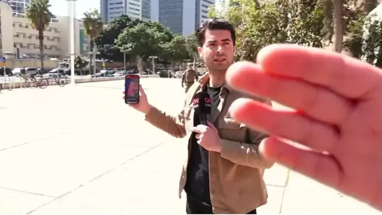 İran’ın Tel Aviv’e yönelik füze saldırılarının ardından kentteki son durumu aktarmak için canlı yayına bağlanan CNN Türk muhabirine, İsrail güvenlik birimleri müdahale etti.