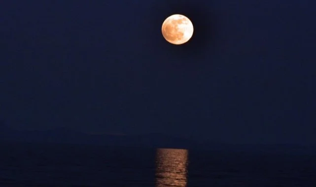 Bitlis'in Ahlat ilçesinde Van Gölü üzerinde yükselen dolunay izleyenleri mest etti.
