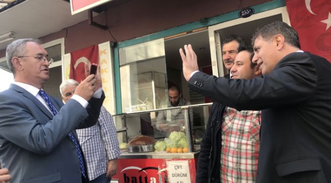 Yerel seçimler yaklaşırken ve adaylar kampanyalarını tüm hızıyla sürdürürken çalışmalar sırasında objektiflere ilginç görüntüler de yansıyor. Bu görüntülerden birisi de Karşıyaka'da yaşandı.