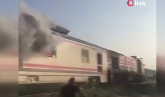 Yolcu treninin vagonu alev alev yandı, vatandaşlar büyük panik yaşadı